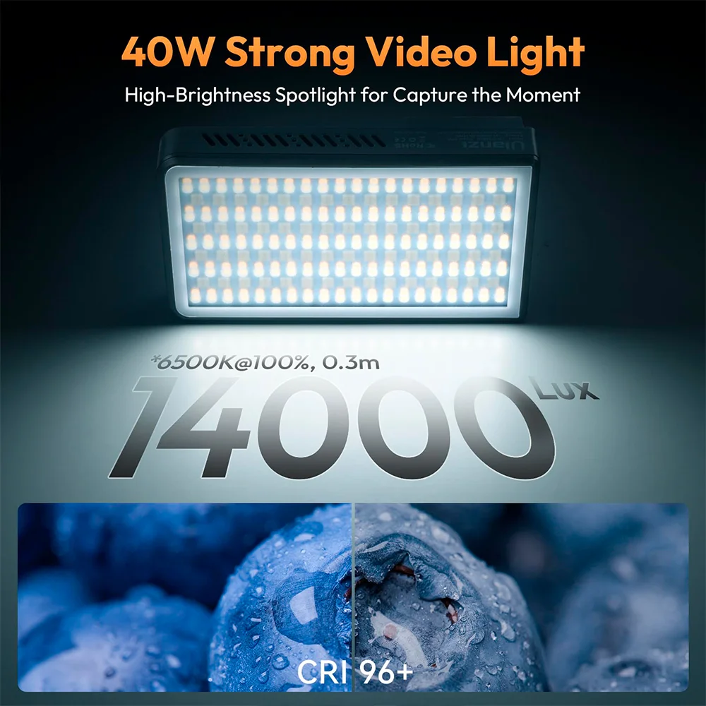 1. Luz De Vídeo LED Ulanzi L129 Bi-color 40W: Projetada para a portabilidade definitiva, esta Luminária LED (L129 LM-P40Bi) entrega a potência de 40W em um corpo compacto (352g), garantindo iluminação de alta clareza e precisão em qualquer ambiente.