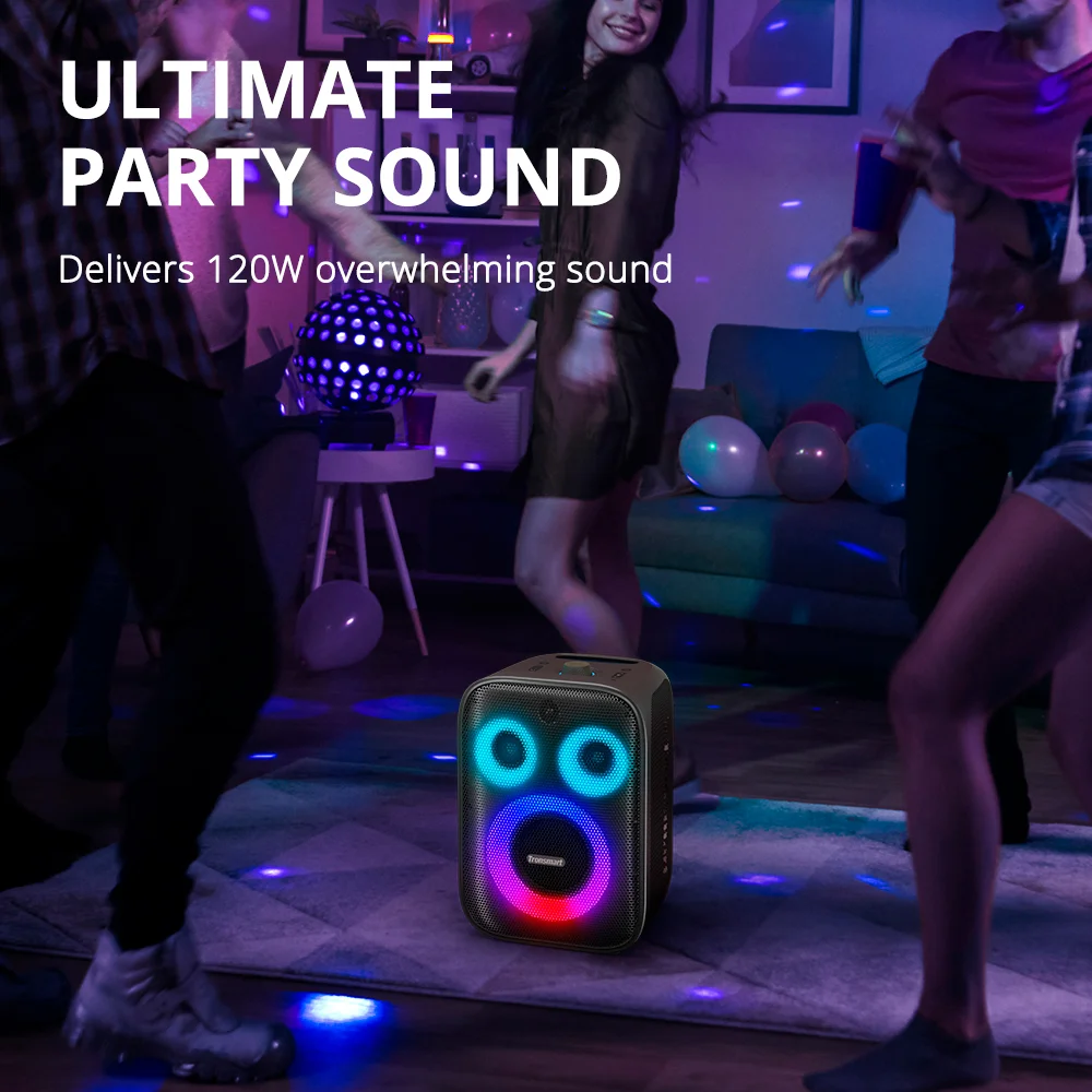 Caixa Som Tronsmart Speaker Bluetooth Portátil Halo 200 Preto com Som Potente 120W, Graves Profundos, Luzes LED e Karaokê. Caixa de Som Sem Fio para Festas, Bateria 18h, IPX4, TWS