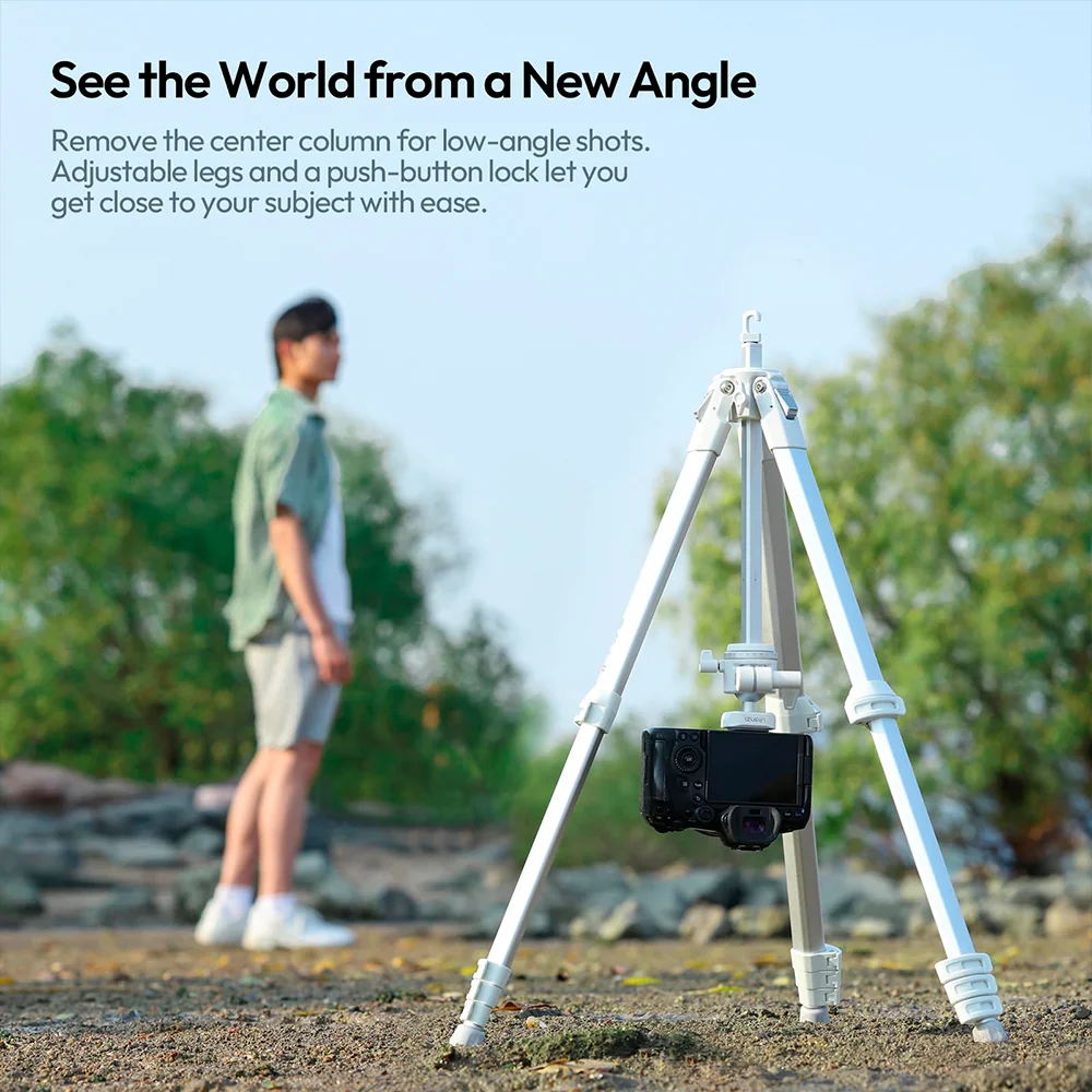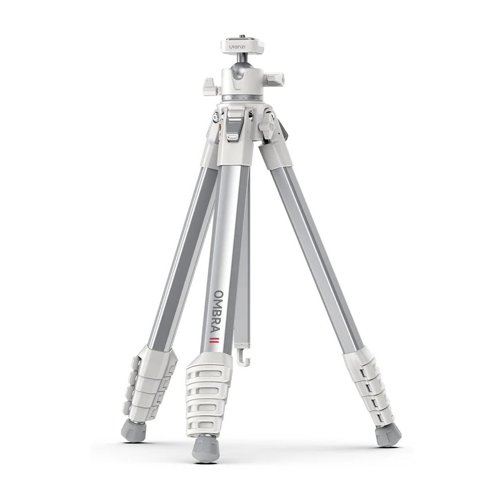 1. Tripé Ulanzi Ombra II T155 Branco: Leve e Portátil: Projetado para mobilidade, este tripé de viagem (T155 Branco) pesa apenas 1,3 kg e se dobra para 48 cm. É o companheiro ideal para criadores de conteúdo, YouTubers e fotógrafos de áreas externas que valorizam praticidade no transporte.