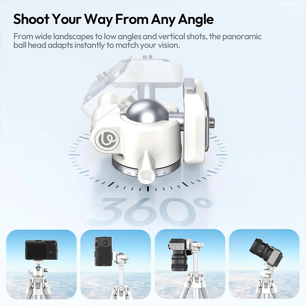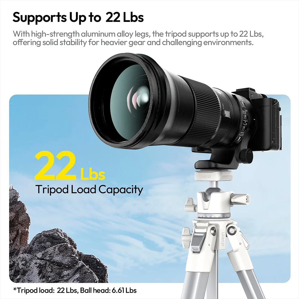 Tripé Fotográfico De Viagem Ulanzi Ombra II T155 Branco 1,56m Leve e Compacto Para Câmera DSLR e Mirrorless Capacidade Carga 10kg Cabeça Esférica 360° Quick-Release Uka F38 e Suporte Celular