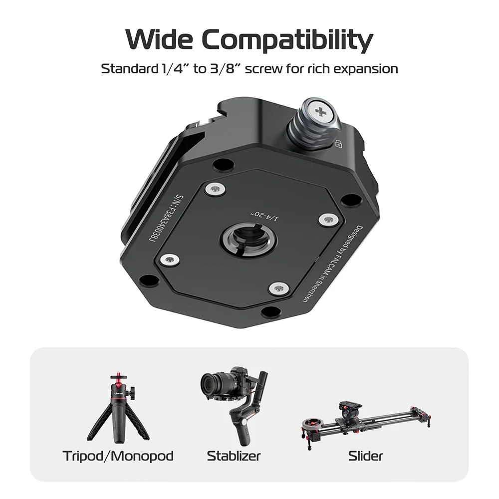 Ulanzi F38 Base Engate Rápido Quick Release para Câmera DSLR Mirrorless Tripé Monopé. Acessório Essencial para Fotografia e Vídeo com Parafusos 1/4" e 3/8" para Estúdio e Filmagens Profissionais