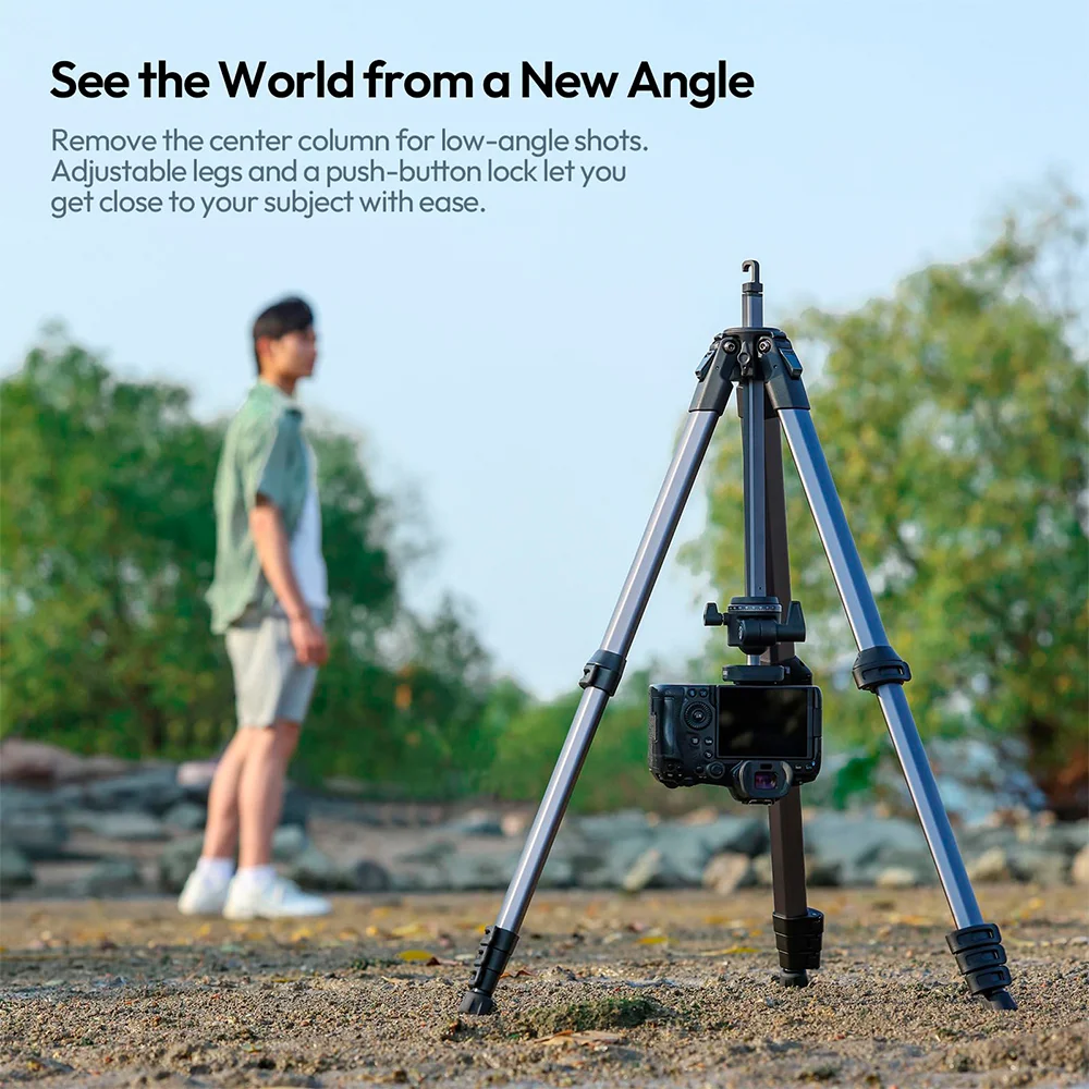 1. Tripé Ulanzi Ombra II T156 Preto: Leve e Portátil: Projetado para mobilidade, este tripé de viagem (T156 Preto) pesa apenas 1,3 kg e se dobra para 48 cm. É o companheiro ideal para criadores de conteúdo, YouTubers e fotógrafos de áreas externas que valorizam praticidade no transporte.