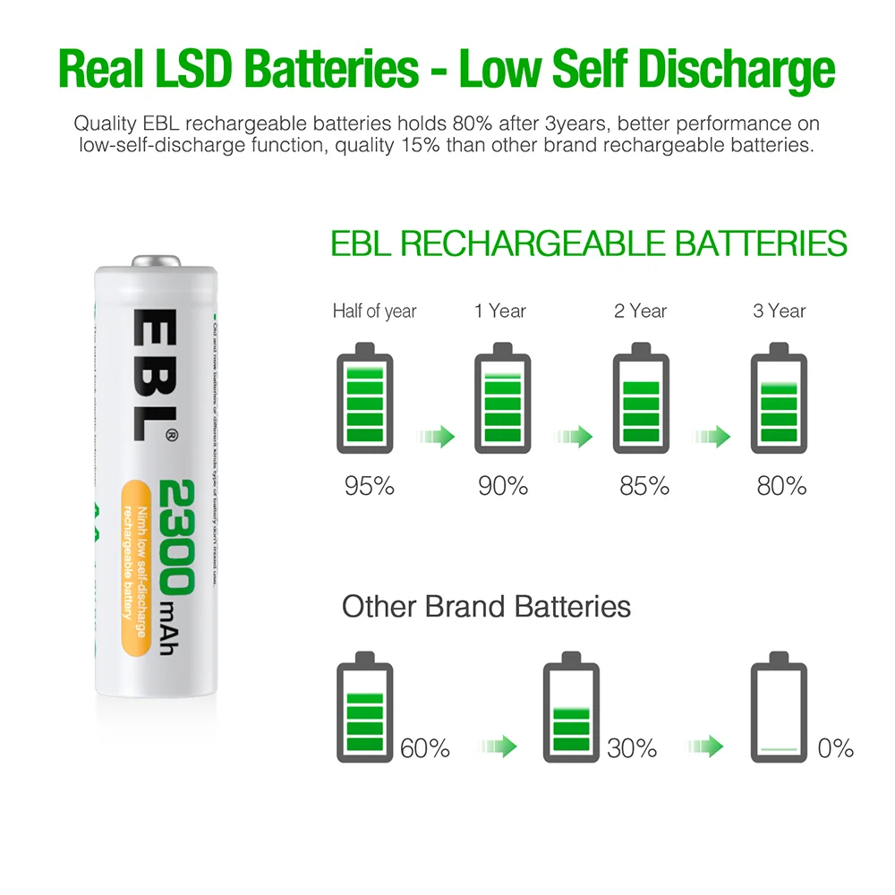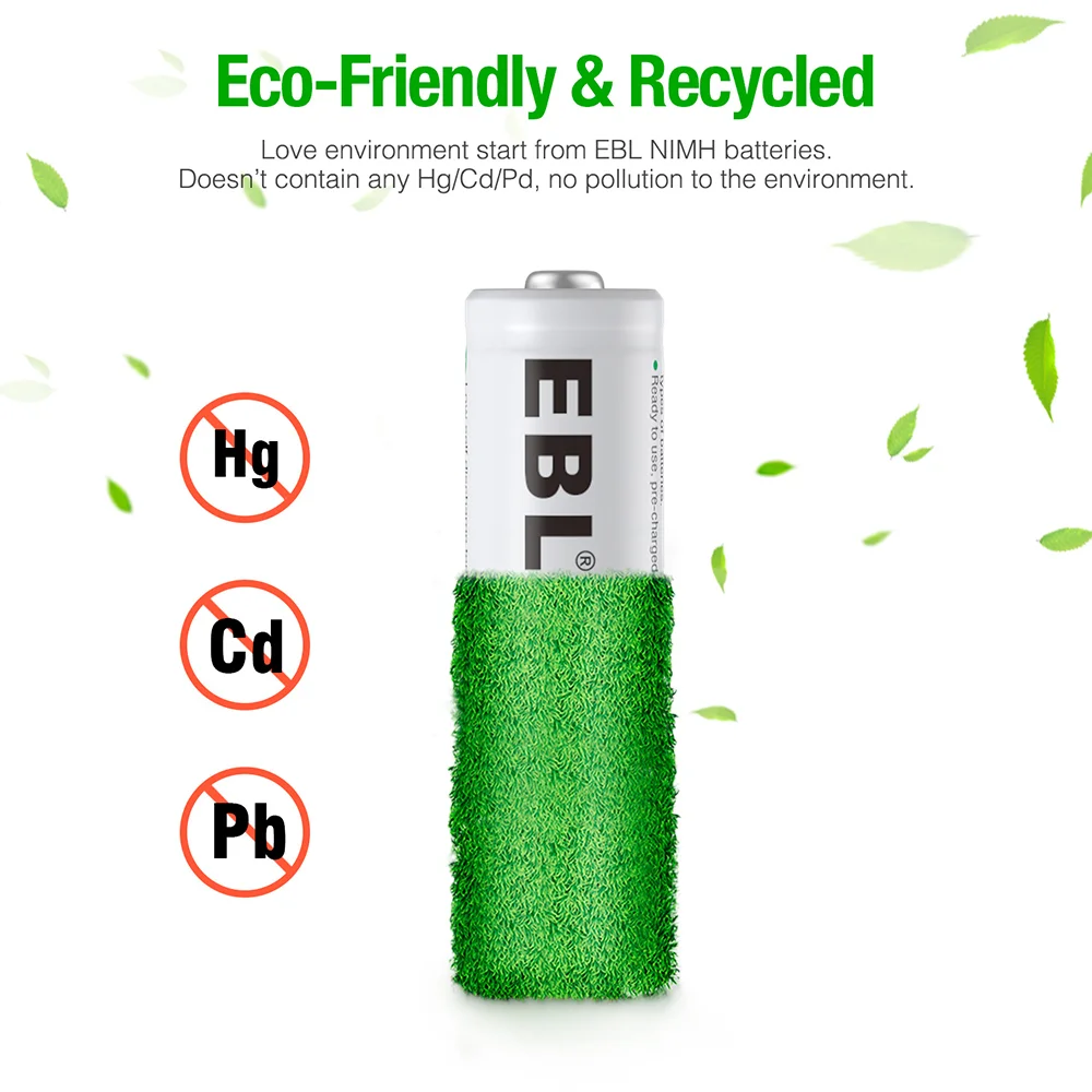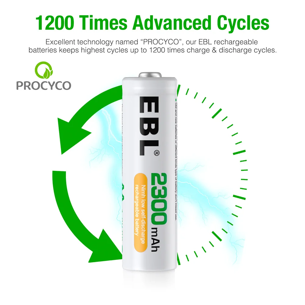 4. Economia e Sustentabilidade: Ao escolher as pilhas recarregáveis EBL 2300mAh, você não apenas economiza dinheiro a longo prazo, evitando a compra constante de pilhas comuns, mas também contribui para um futuro mais sustentável, reduzindo significativamente o descarte de resíduos. Desfrute de centenas de ciclos de carga e recarga, com a conveniência da EBL.