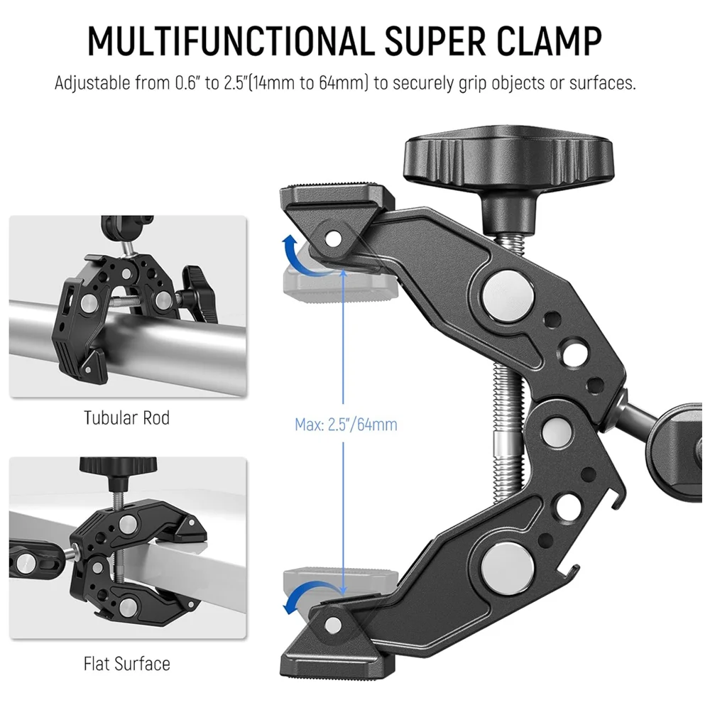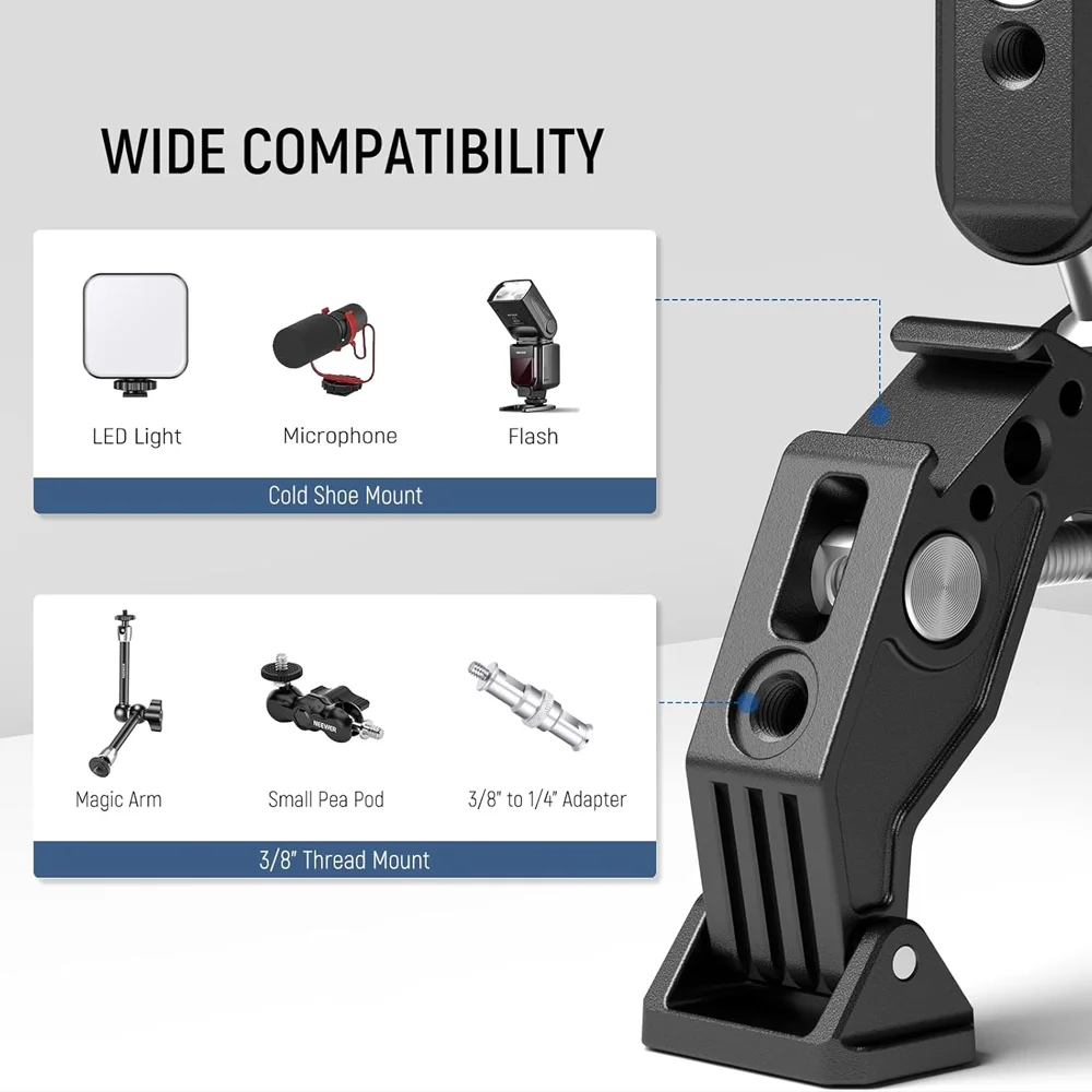 Neewer Garra Metálica Dupla Tipo Caranguejo com Adaptador Braço Mágico para Suporte Universal de Câmeras, Iluminação, Monitores e Acessórios em Estúdios de Fotografia e Vídeo
