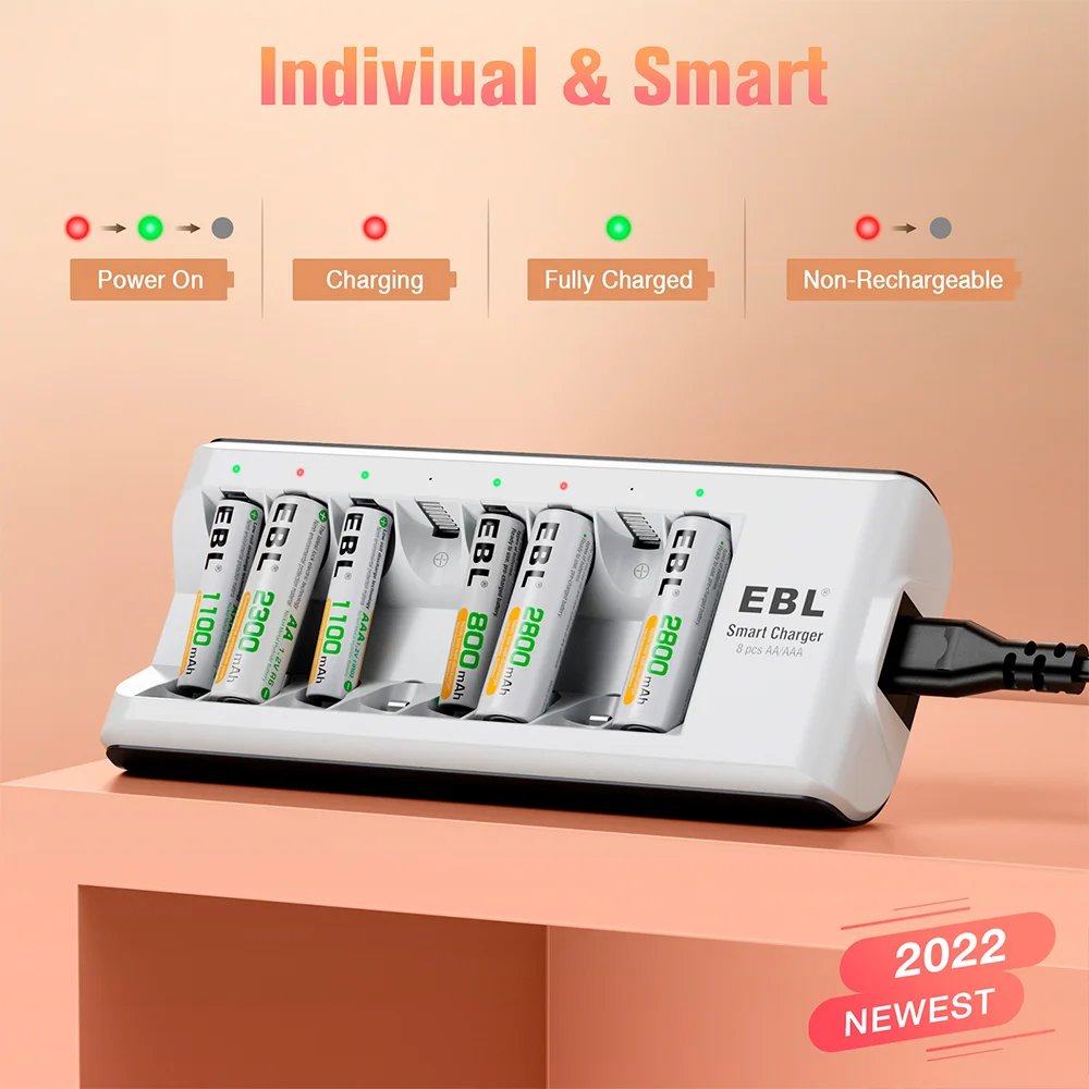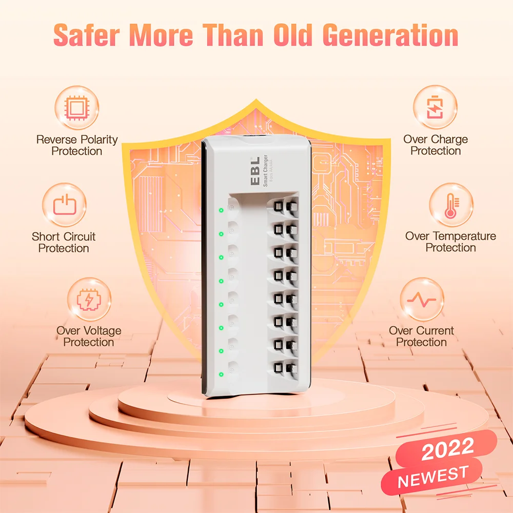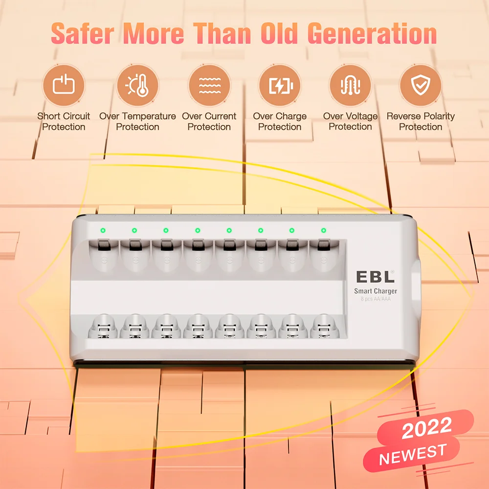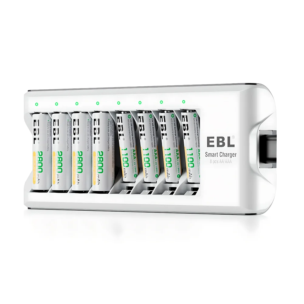 Carregador de Pilhas EBL 8 Slots AA AAA Recarregáveis NiMH NiCD Carga Rápida Inteligente Bivolt com Proteção Avançada para Eletrônicos