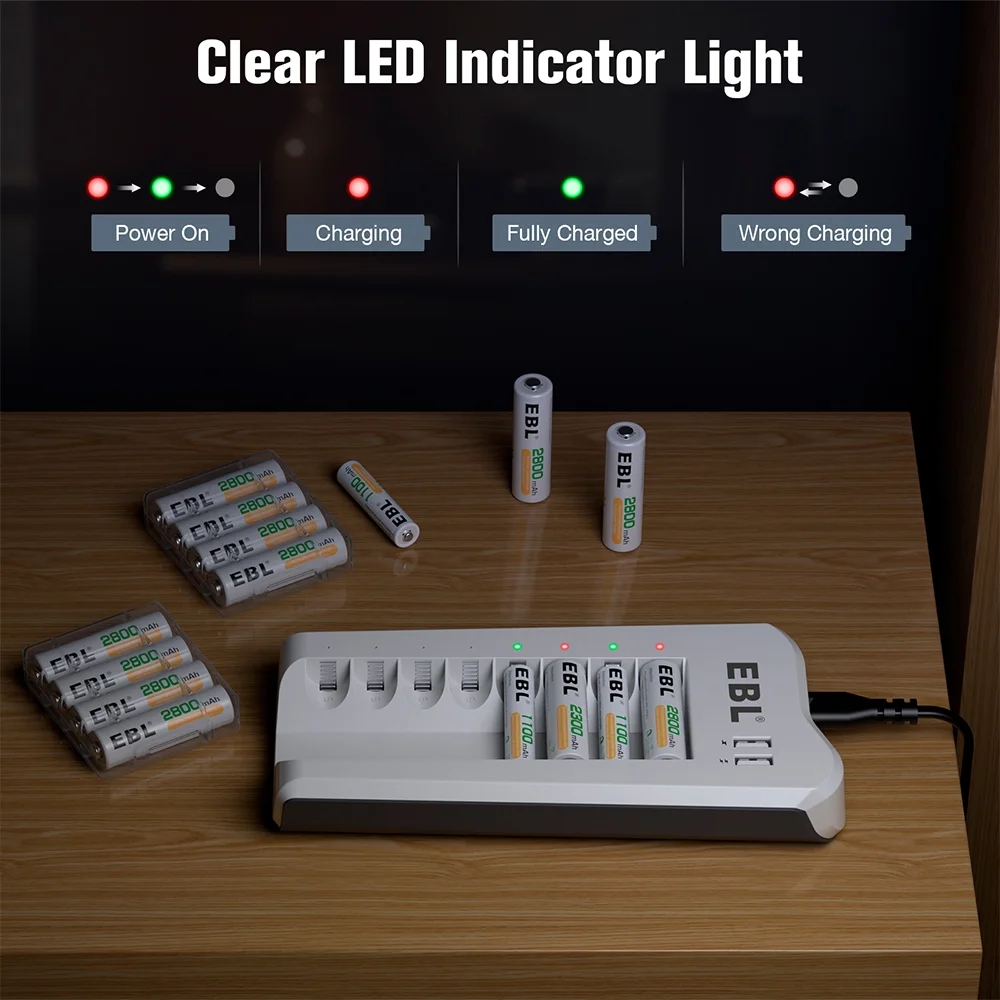 3. Segurança Avançada e Proteção Completa Projetado com sistemas de proteção inteligentes, o carregador EBL oferece segurança contra sobrecarga, curto-circuito, polaridade invertida e superaquecimento. Cada compartimento monitora o status individualmente, assegurando um carregamento estável e confiável.