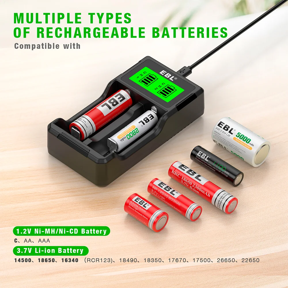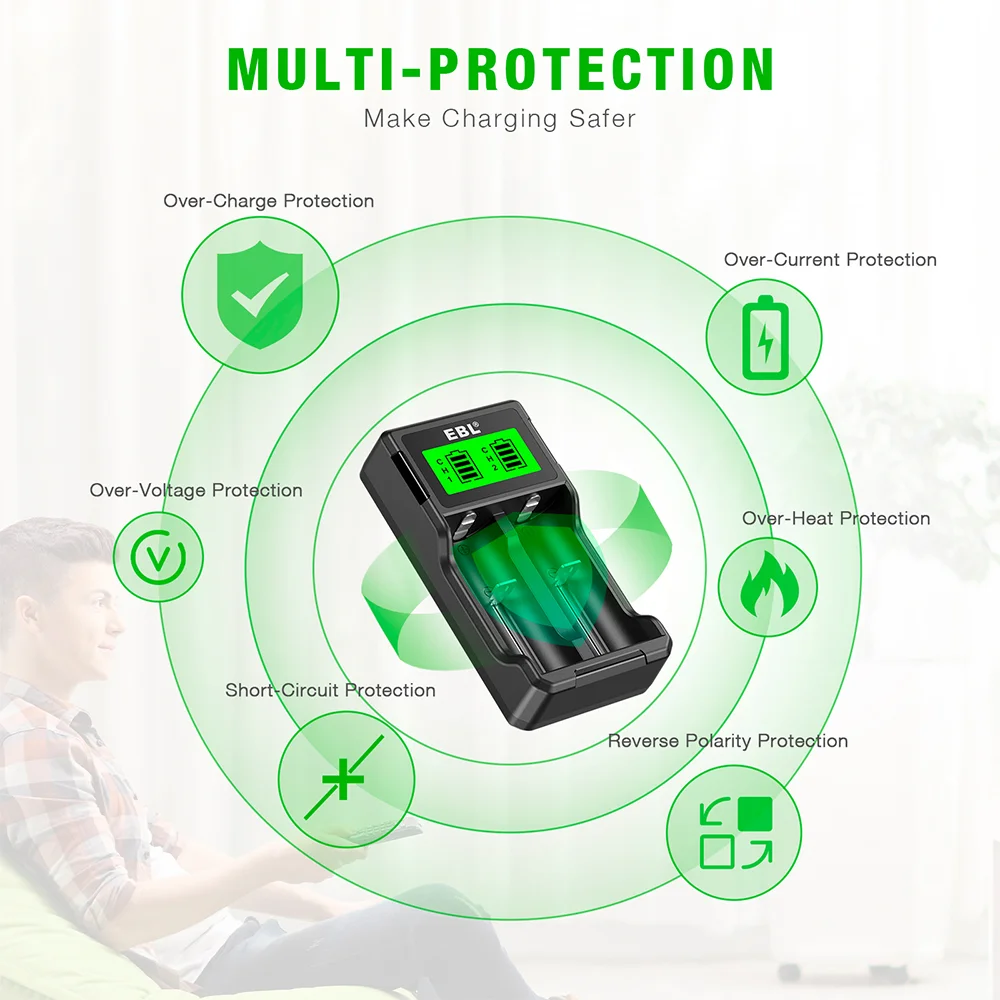 Carregador Ebl Pilha/bateria C Aa Aaa Li-ion Ni-mh Preto