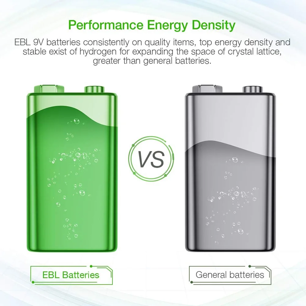 2. Tecnologia de Carregamento Inteligente e Seguro EBL: Equipado com sistema de proteção avançado contra sobrecarga, superaquecimento, curto-circuito e polaridade reversa. Este carregador 9V Li-ion inteligente garante um processo de carga seguro, prolongando a vida útil de suas baterias recarregáveis e protegendo seus valiosos equipamentos.