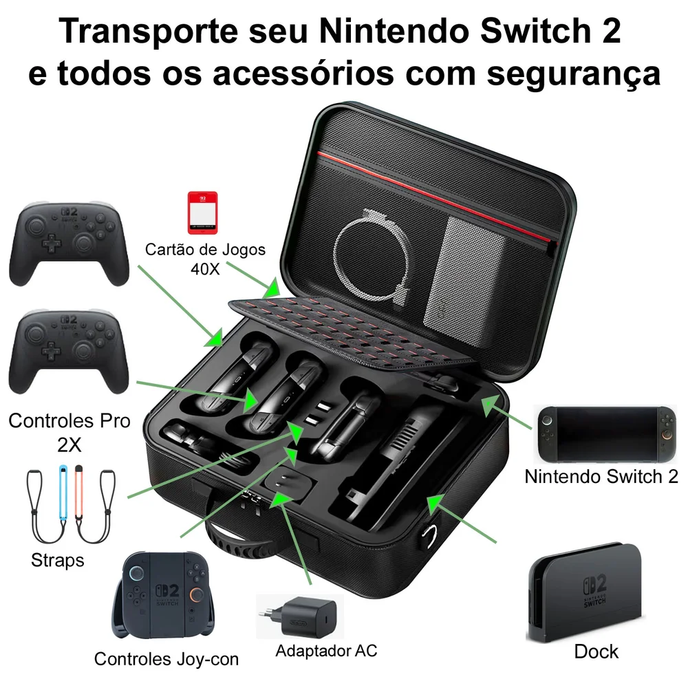 Leve seu Nintendo Switch 2 e todos os acessórios com segurança e praticidade!