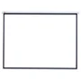 as telas de projeção retrátil da tes possui acionamento manual, estojo em aço carbono na cor branca e pode ser fixada no teto ou na parede.