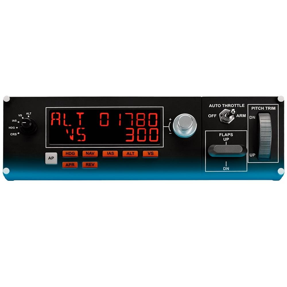 Voe com o auxílio de um display em LED contendo o recurso de piloto automático completo, funcionando em tempo real na maioria dos softwares de simulação de voo. Nada de controles temperamentais na tela. Integre-o ao Logitech G Flight Yoke System ou em seu equipamento personalizado de cabine. Um seletor integrado ajusta as unidades de frequência para que a seleção seja mais rápida. Configure facilmente o ajuste de manete, flaps e leme de profundidade.